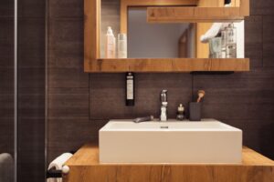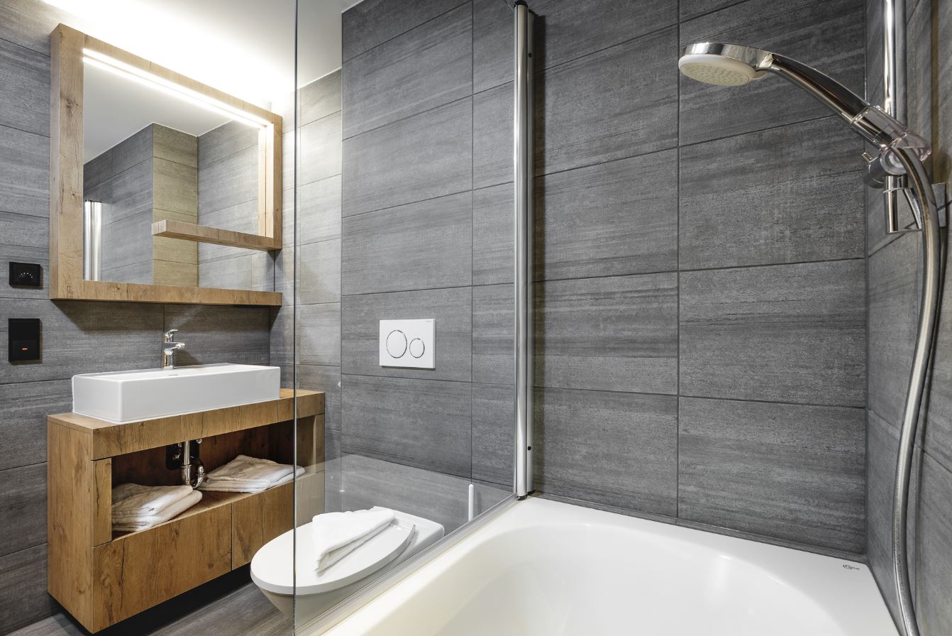 De badkamers hebben een strak, eigentijds ontwerp en zijn voorzien van toonaangevende Hansgrohe-kranen en hoogwaardige tegels in groot formaat. Deze zorgvuldig geselecteerde materialen zorgen voor een hoge mate van functionele luxe en een verfijnde, tijdloze uitstraling.