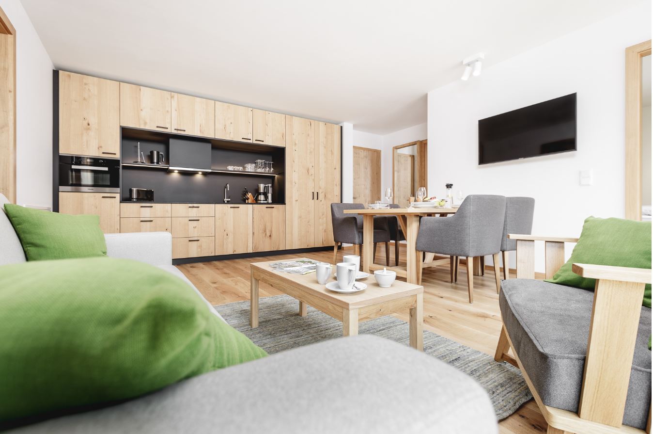 Net als in de beste hotels, zijn er Oostenrijkse houten meubels en deuren en traditionele Zwitserse parketvloeren met vloerverwarming onder de gehele vloer. Standaard inbegrepen is ook een Miele keuken met inbouwapparatuur en een flatscreen Smart tv. We hebben aan alles gedacht wat u nodig heeft om uw appartement direct te betrekken, zoals kasten, beddengoed, gordijnen, bestek en servies.