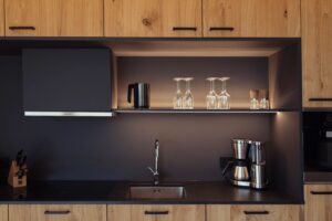 Strak, open en van alle gemakken voorzien. Onze keukens zijn uitgerust met hoogwaardige Miele-apparatuur en WMF-serviesgoed, wat zorgt voor een perfecte combinatie van luxe en gebruiksgemak. Dankzij de ruime indeling en hoogwaardige afwerking vormt deze ruimte het ideale sociale middelpunt van uw toevluchtsoord in de bergen.